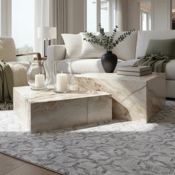 La mesa CHIC destaca por su tapa redonda y base cruzada, creando una silueta equilibrada que combina arte y funcionalidad. Su brillo pulido y la suavidad de la piedra la convierten en un acento elegante para salones, dormitorios o espacios de lectura.